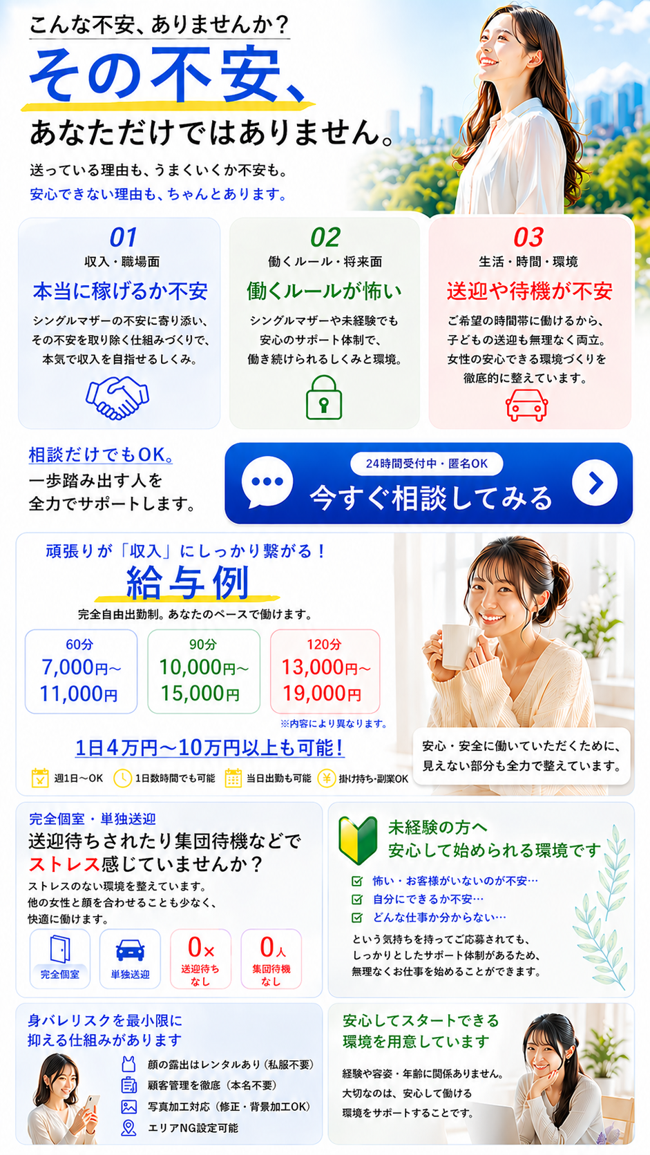 在籍女性の皆様に安心して気持ちよく働いていただけるよう、当店では各種待遇や環境抜群♪